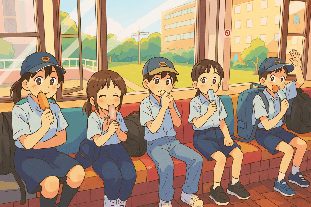 お昼ごはんの後は、スポーツセンター内で合格のお祝いとして、みんなでアイスを