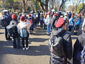 朝礼後、中等級以上の団員が班長を務め、都内団との混成による班編成で館内を巡りました。各班は班長の判断のもと、見学コースや昼食場所を決め、協力しながら自主的に行動していました。